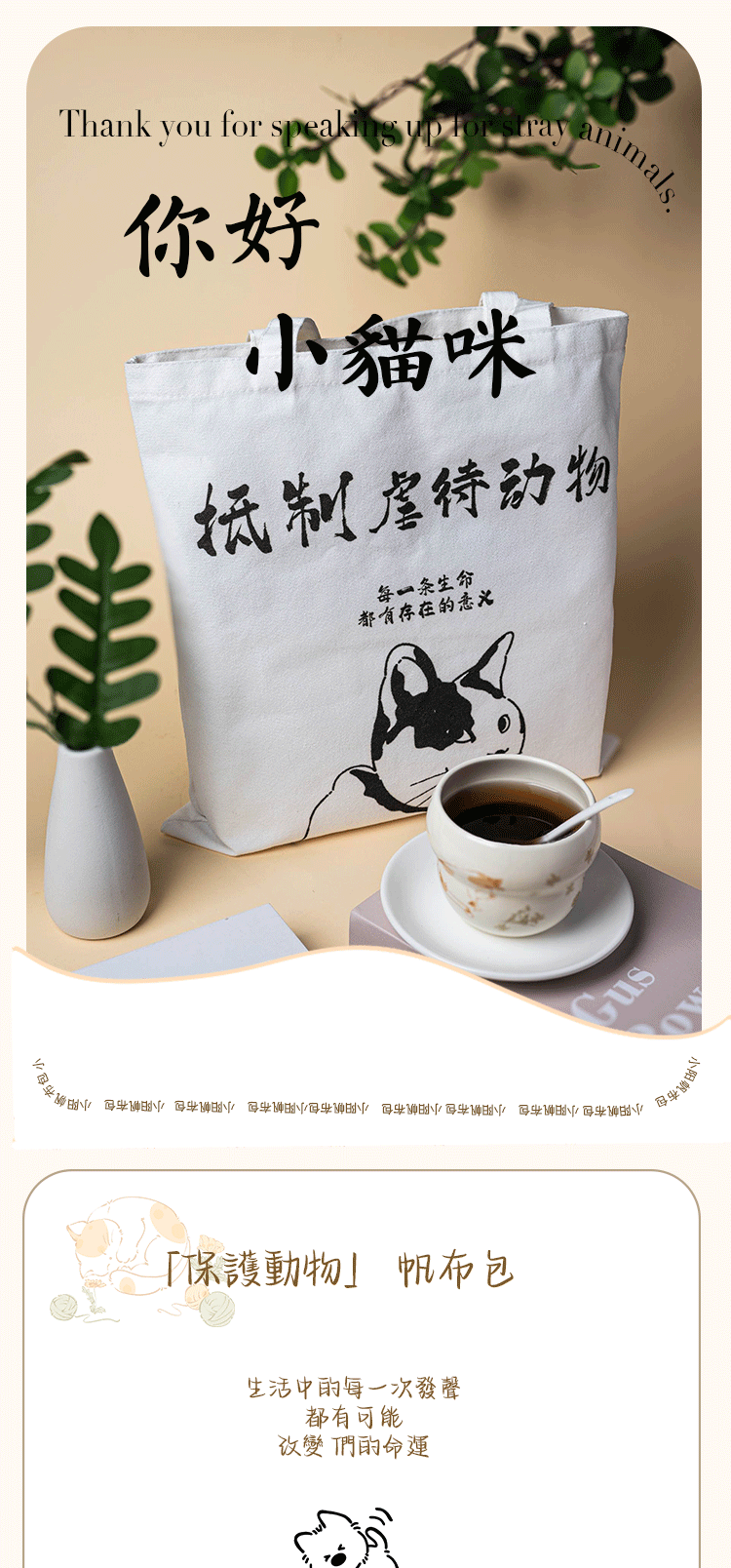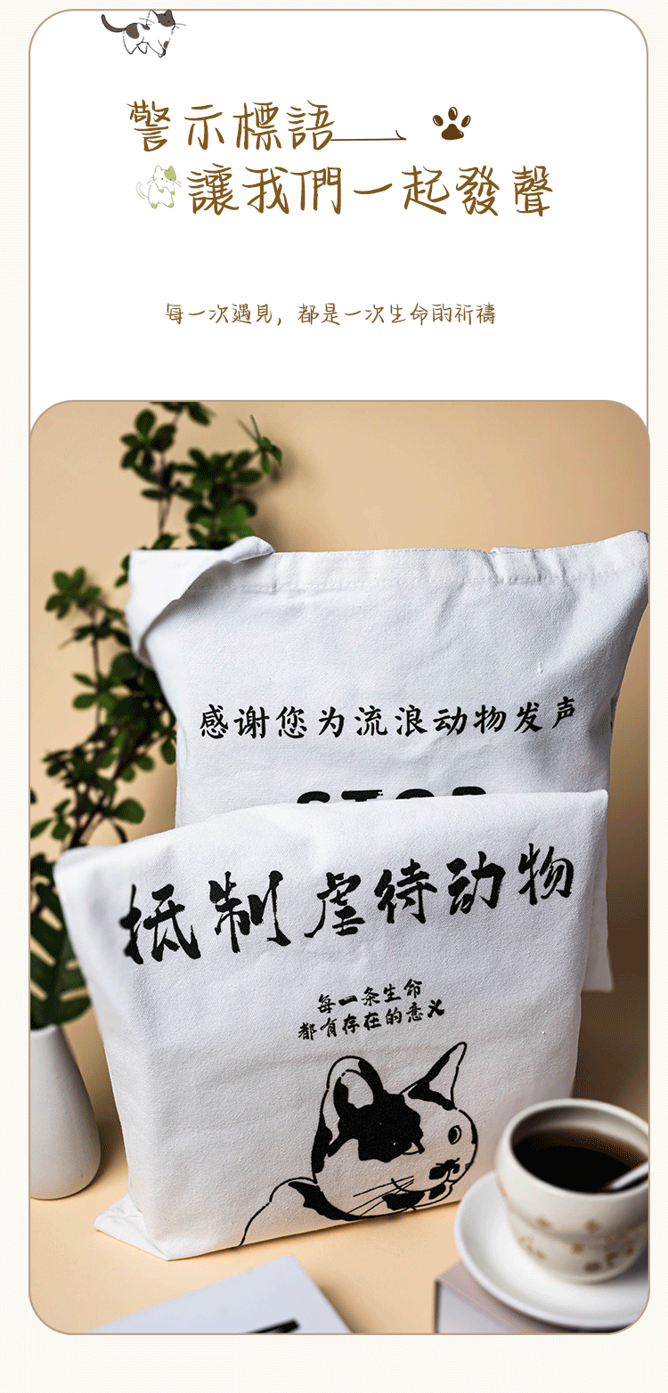 小陽幫幫|原創|Be Kind 善待流浪動物帆布肩背包