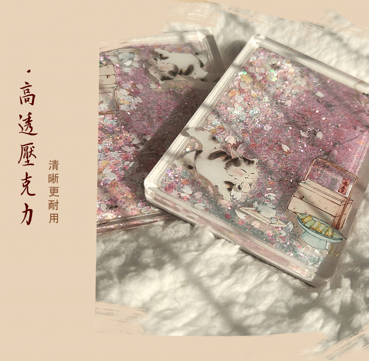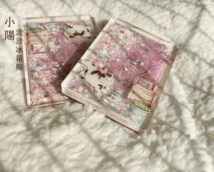 小陽幫幫|原創|桃花朵朵喵流沙磁吸冰箱貼