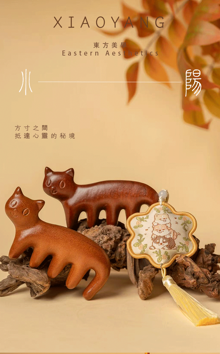 小陽幫幫|原創|寵物貓貓造型彈幕實木經絡按摩梳